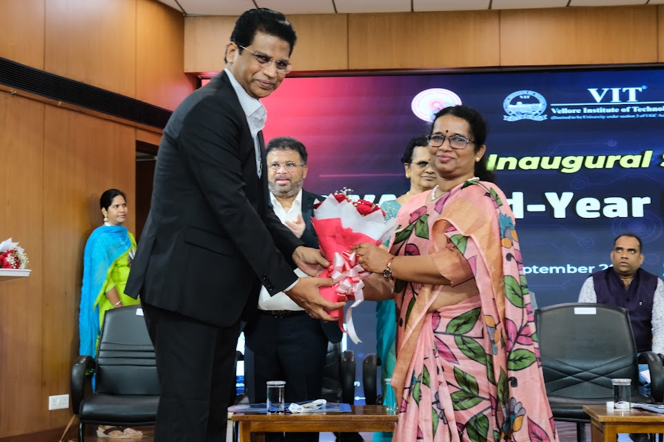 Dr. Sekar Viswanathan, Vice President of VIT, warmly welcomed Dr. G. Viswanathan, Chancellor of VIT, to VIT Chennai for the inauguration of the Research Scholars Hall on September 3, 2024. Dr. Sandhya Pentareddy, Vice President of VIT Bangalore, and Dr. Sankar Viswanathan Vice President of VIT also graced the occasion. The new facility aims to foster innovative research and collaboration among scholars, further solidifying VIT Chennai's commitment to academic excellence and cutting-edge research.